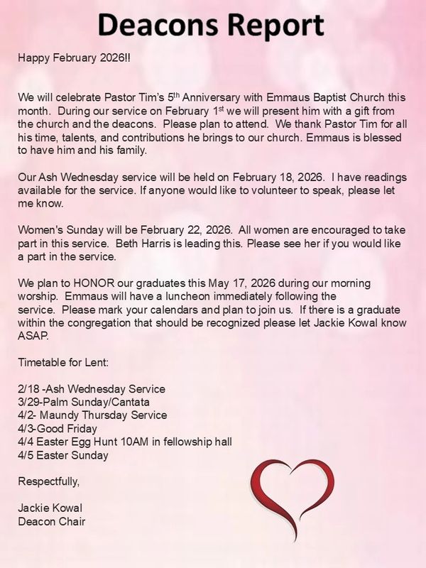 Subscribe to receive information about what is going on here at Emmaus Baptist Church.